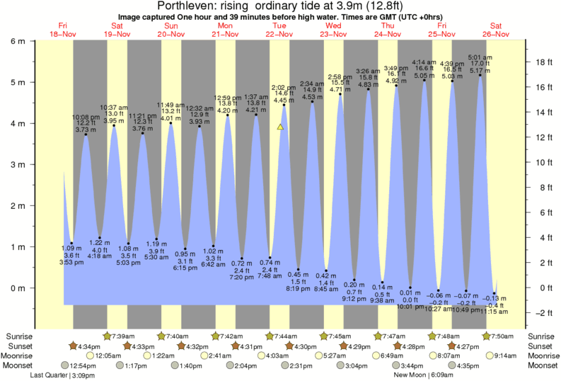 Forecast wind and swell just offshore from Porthleven around the time the photo was taken