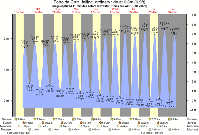 Forecast wind and swell just offshore from Porto da Cruz around the time the photo was taken