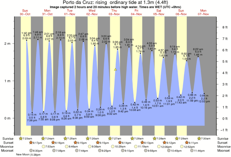 Forecast wind and swell just offshore from Porto da Cruz around the time the photo was taken