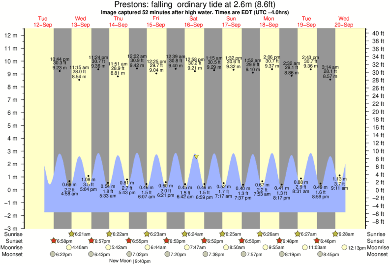 Image captured 52 minutes after high water (falling ordinary tide). Tide height was 2.6m (8.6 ft). Range 12.98m (42.6 ft). Toggle tide graph