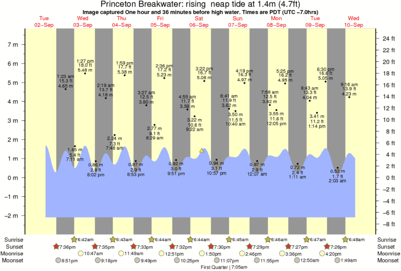Forecast wind and swell just offshore from Princeton Breakwater around the time the photo was taken
