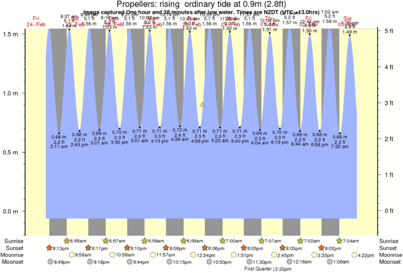Forecast wind and swell just offshore from Propellers around the time the photo was taken