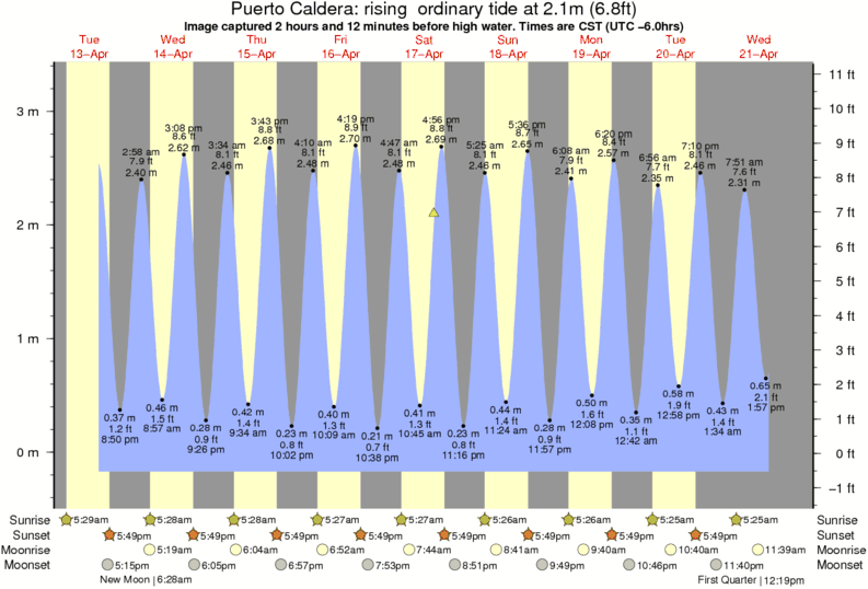 Forecast wind and swell just offshore from Puerto Caldera - El Hoyo around the time the photo was taken