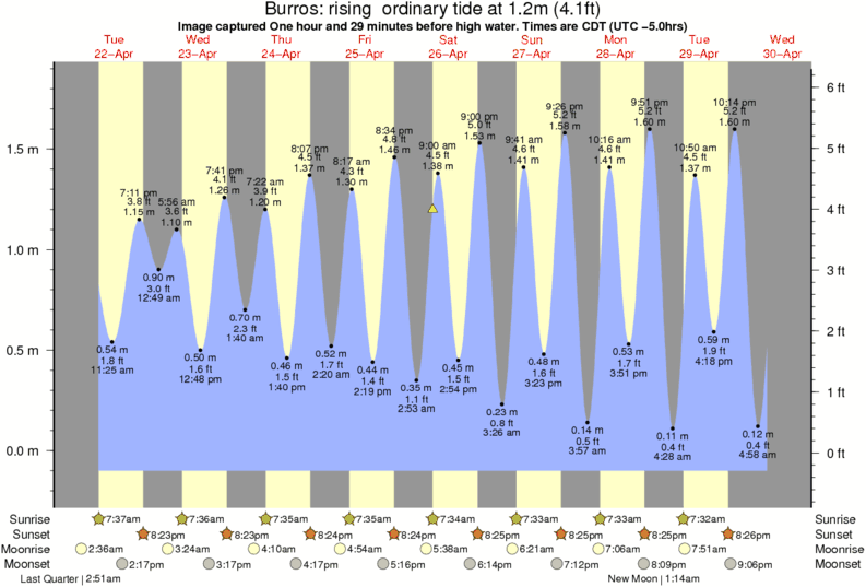 Image captured One hour and 29 minutes before high water (rising ordinary tide). Tide height was 1.2m (4.1 ft). Range 1.85m (6.1 ft). Toggle tide graph