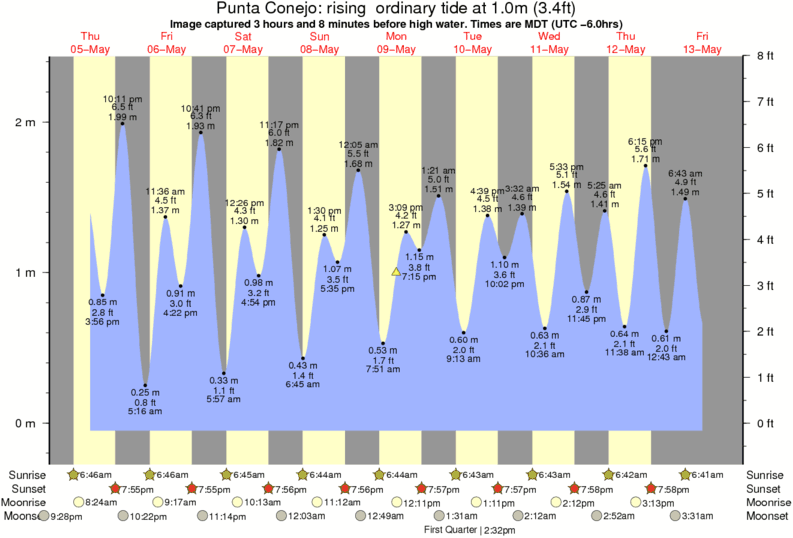 Image captured 3 hours and 8 minutes before high water (rising ordinary tide). Tide height was 1.0m (3.4 ft). Range 2.26m (7.4 ft). Toggle tide graph