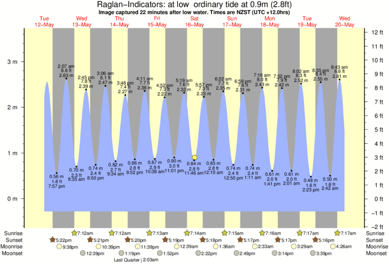 Forecast wind and swell just offshore from Raglan-Indicators around the time the photo was taken