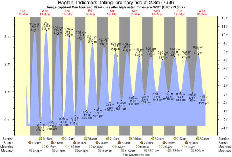Image captured One hour and 19 minutes after high water (falling ordinary tide). Tide height was 2.3m (7.5 ft). Range 3.57m (11.7 ft). Toggle tide graph
