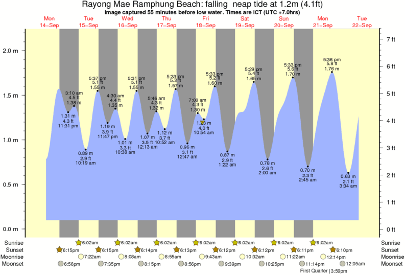 Forecast wind and swell just offshore from Rayong Mae Ramphung Beach around the time the photo was taken