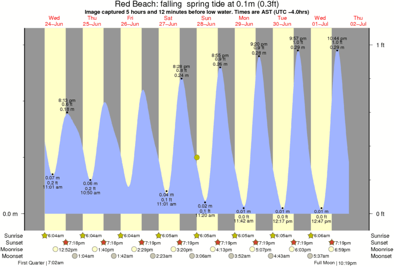 Image captured 5 hours and 12 minutes before low water (falling spring tide). Tide height was 0.1m (0.3 ft). Range 0.30m (1.0 ft). Toggle tide graph