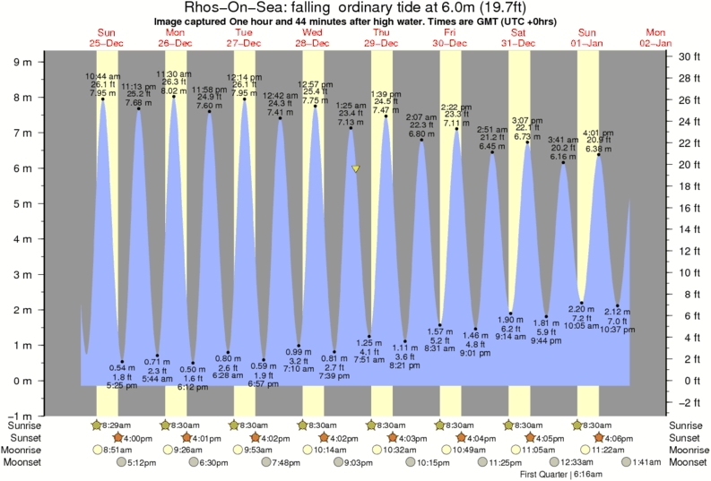 Image captured One hour and 44 minutes after high water (falling ordinary tide). Tide height was 6.0m (19.7 ft). Range 8.60m (28.2 ft). Toggle tide graph