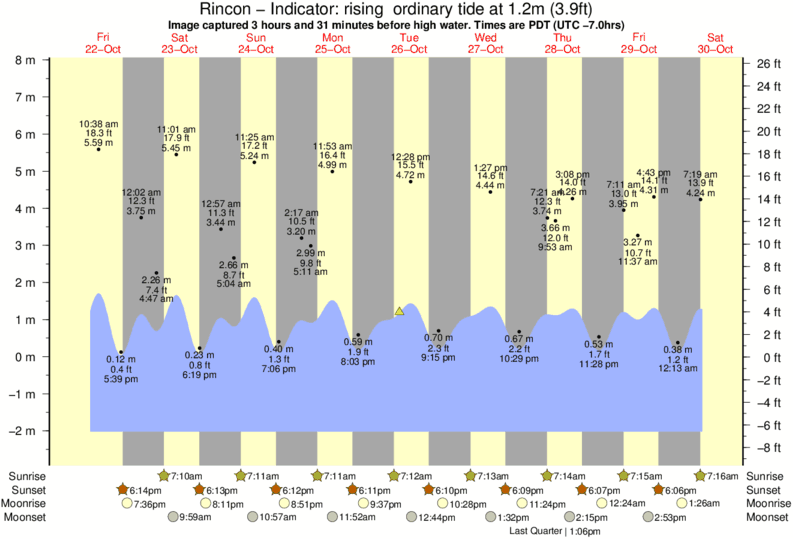 Forecast wind and swell just offshore from Rincon - Indicator around the time the photo was taken