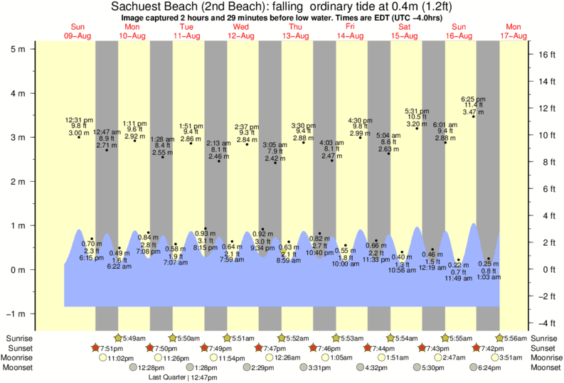 Image captured 2 hours and 29 minutes before low water (falling ordinary tide). Tide height was 0.4m (1.2 ft). Range 5.48m (18.0 ft). Toggle tide graph