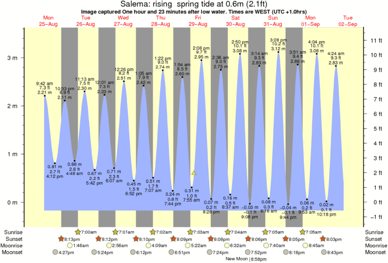 Image captured One hour and 23 minutes after low water (rising spring tide). Tide height was 0.6m (2.1 ft). Range 3.45m (11.3 ft). Toggle tide graph