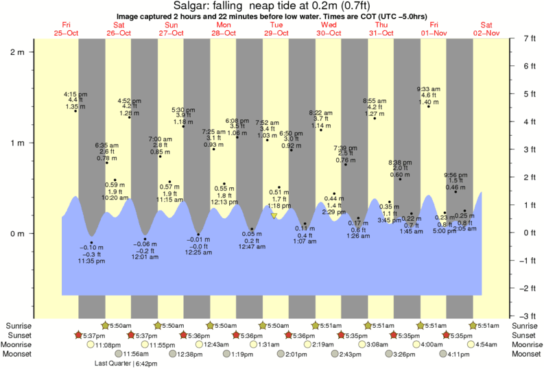 Image captured 2 hours and 22 minutes before low water (falling neap tide). Tide height was 0.2m (0.7 ft). Range 2.57m (8.4 ft). Toggle tide graph
