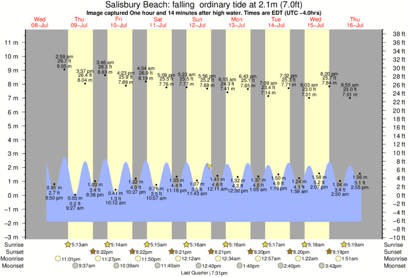 Forecast wind and swell just offshore from Salisbury Beach around the time the photo was taken