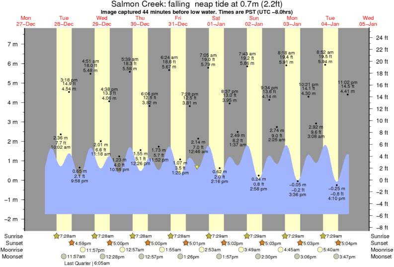 Image captured 44 minutes before low water (falling neap tide). Tide height was 0.7m (2.2 ft). Range 8.70m (28.5 ft). Toggle tide graph