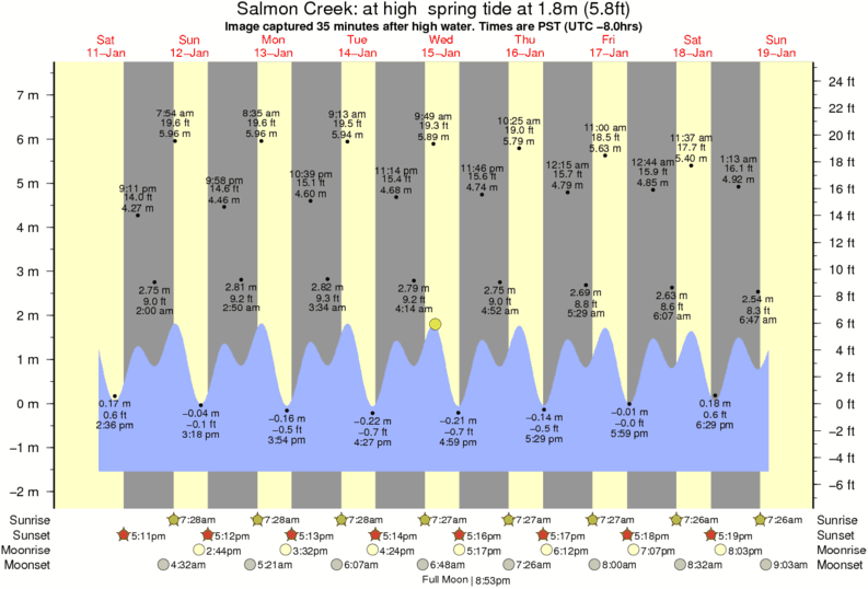 Image captured 35 minutes after high water (at high spring tide). Tide height was 1.8m (5.8 ft). Range 8.45m (27.7 ft). Toggle tide graph