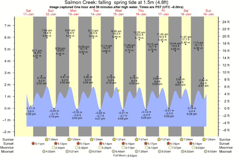 Forecast wind and swell just offshore from Salmon Creek around the time the photo was taken