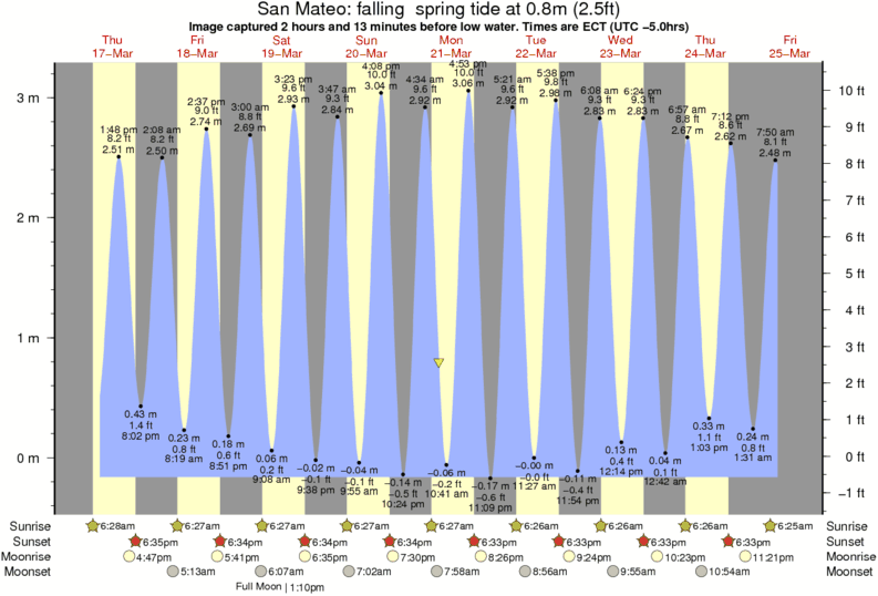 Image captured 2 hours and 13 minutes before low water (falling spring tide). Tide height was 0.8m (2.5 ft). Range 3.14m (10.3 ft). Toggle tide graph