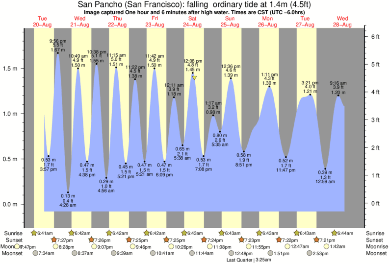 Image captured One hour and 6 minutes after high water (falling ordinary tide). Tide height was 1.4m (4.5 ft). Range 1.84m (6.0 ft). Toggle tide graph