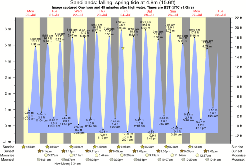 Image captured One hour and 45 minutes after high water (falling spring tide). Tide height was 4.8m (15.6 ft). Range 6.52m (21.4 ft). Toggle tide graph