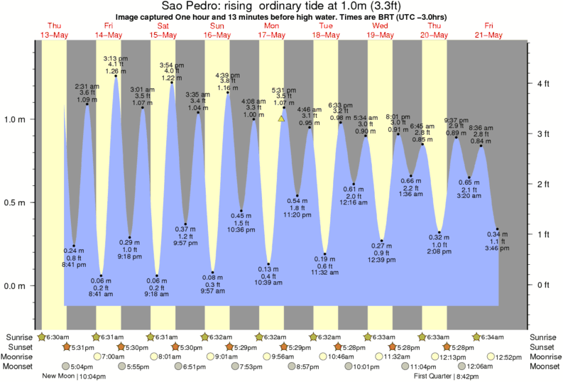 Forecast wind and swell just offshore from Sao Pedro around the time the photo was taken