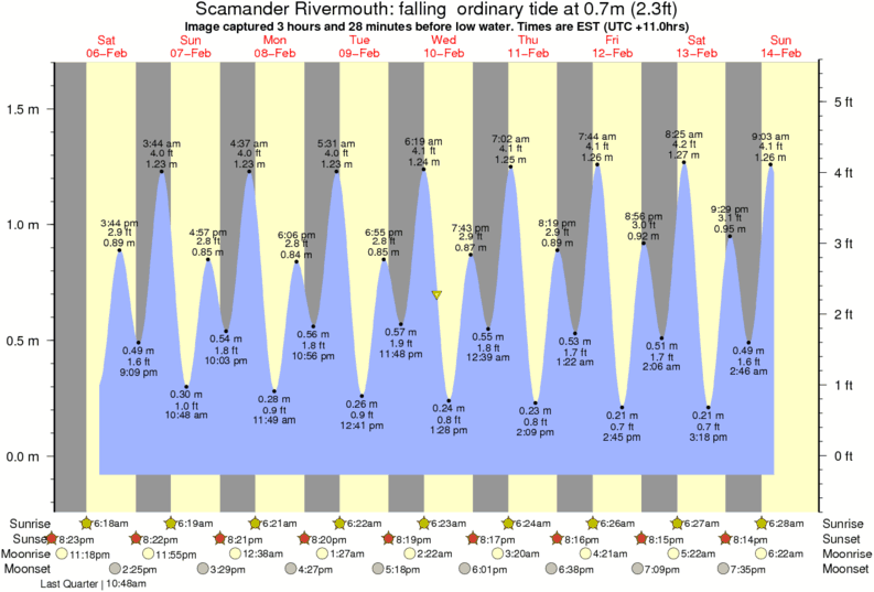 Image captured 3 hours and 28 minutes before low water (falling ordinary tide). Tide height was 0.7m (2.3 ft). Range 1.62m (5.3 ft). Toggle tide graph