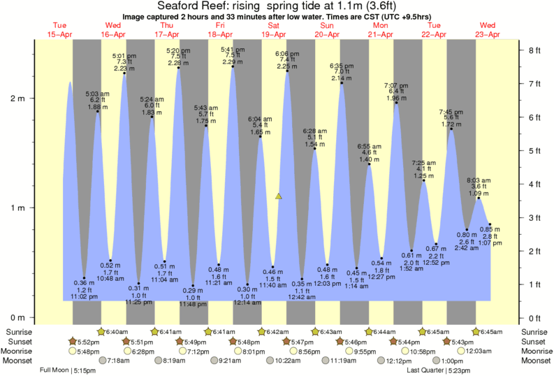 Forecast wind and swell just offshore from Seaford Reef around the time the photo was taken