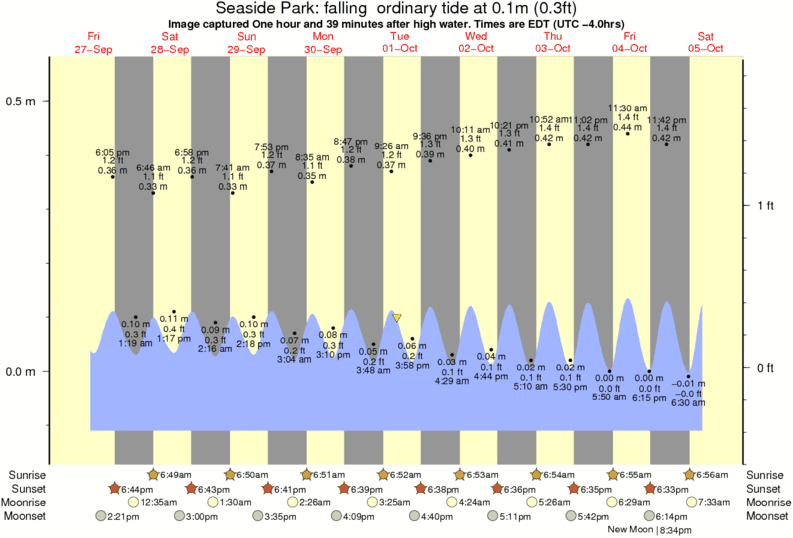 Image captured One hour and 39 minutes after high water (falling ordinary tide). Tide height was 0.1m (0.3 ft). Range 0.63m (2.1 ft). Toggle tide graph