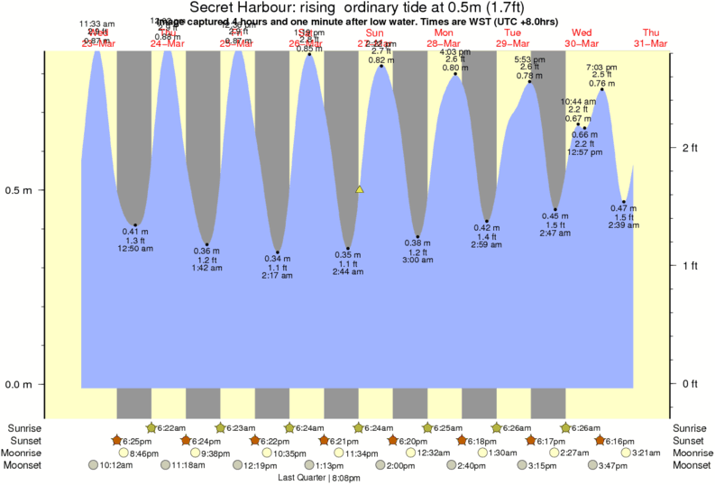 Image captured 4 hours and one minute after low water (rising ordinary tide). Tide height was 0.5m (1.7 ft). Range 0.79m (2.6 ft). Toggle tide graph