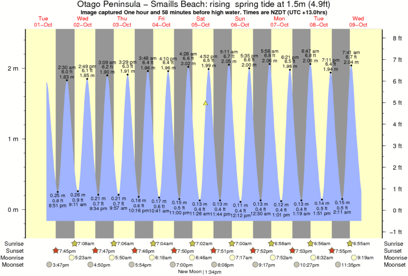 Forecast wind and swell just offshore from Otago Peninsula - Smaills Beach around the time the photo was taken