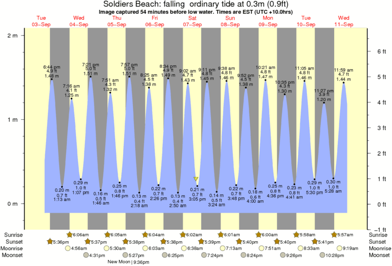 Forecast wind and swell just offshore from Soldiers Beach around the time the photo was taken