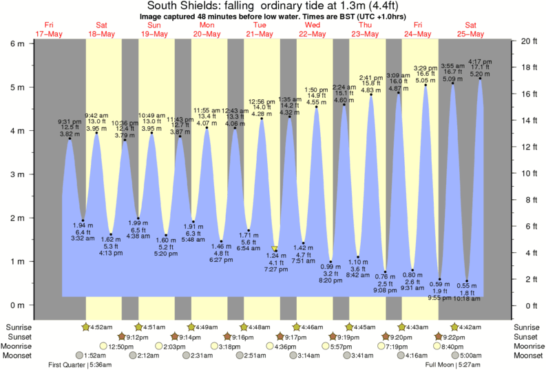 Image captured 48 minutes before low water (falling ordinary tide). Tide height was 1.3m (4.4 ft). Range 5.38m (17.7 ft). Toggle tide graph