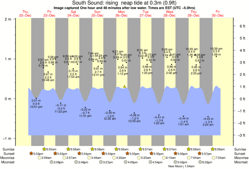 Image captured One hour and 48 minutes after low water (rising neap tide). Tide height was 0.3m (0.9 ft). Range 2.68m (8.8 ft). Toggle tide graph