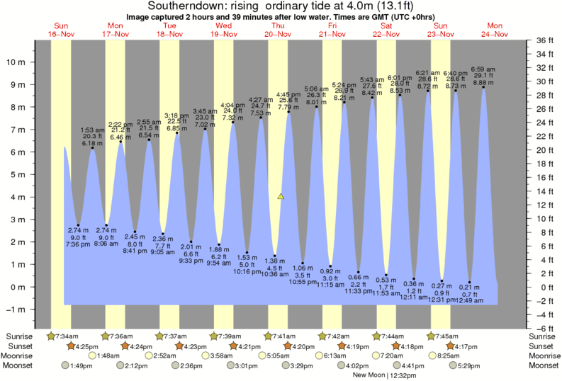 Forecast wind and swell just offshore from Southerndown around the time the photo was taken