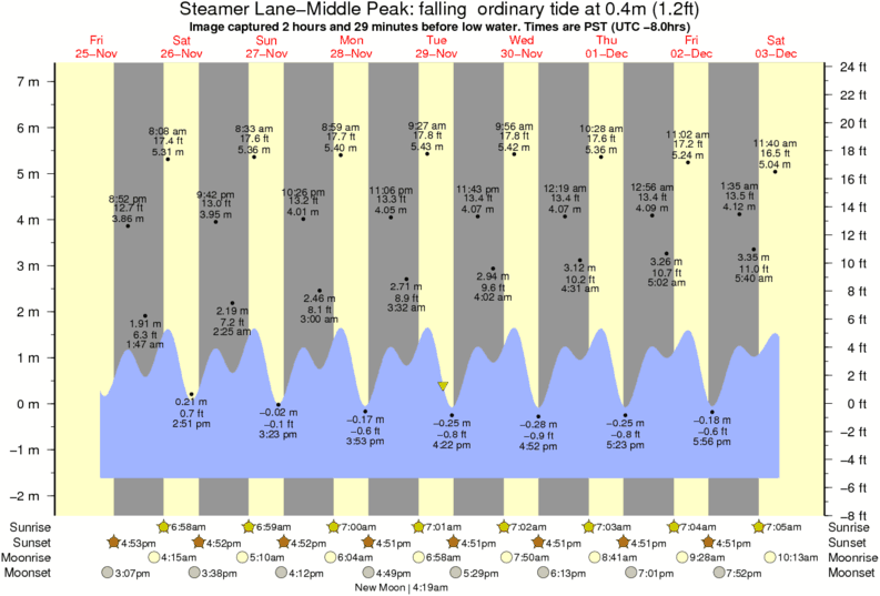 Forecast wind and swell just offshore from Steamer Lane-Middle Peak around the time the photo was taken