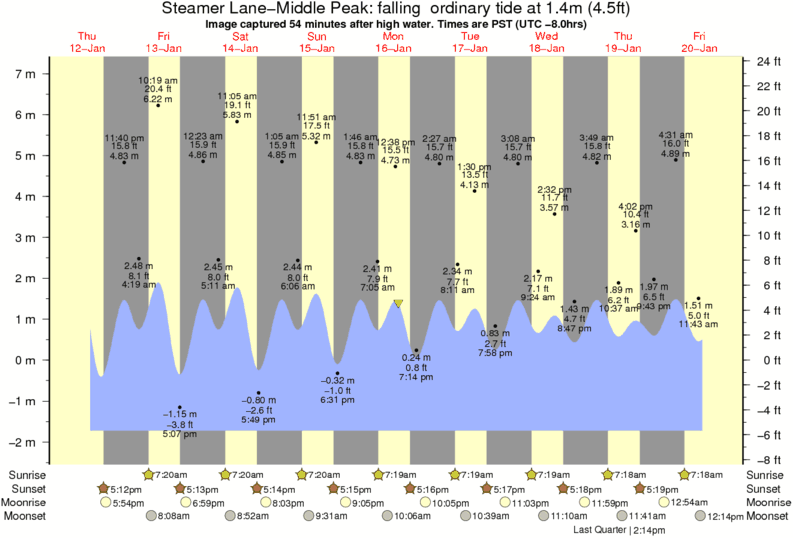 Image captured 54 minutes after high water (falling ordinary tide). Tide height was 1.4m (4.5 ft). Range 8.31m (27.3 ft). Toggle tide graph