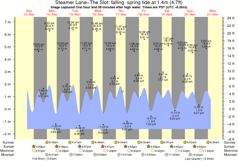 Forecast wind and swell just offshore from Steamer Lane-The Slot around the time the photo was taken