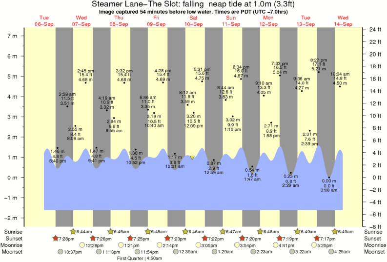 Forecast wind and swell just offshore from Steamer Lane-The Slot around the time the photo was taken