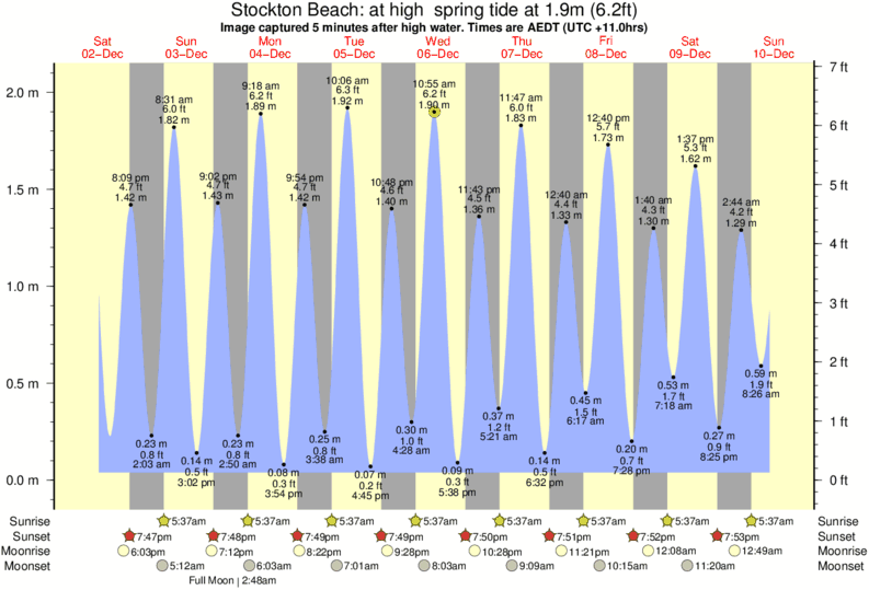 Image captured 5 minutes after high water (at high spring tide). Tide height was 1.9m (6.2 ft). Range 1.92m (6.3 ft). Toggle tide graph