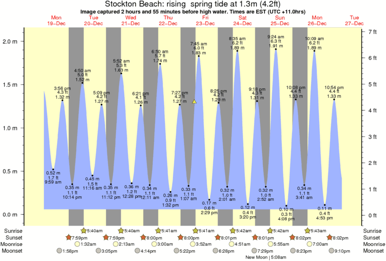 Forecast wind and swell just offshore from Stockton Beach around the time the photo was taken