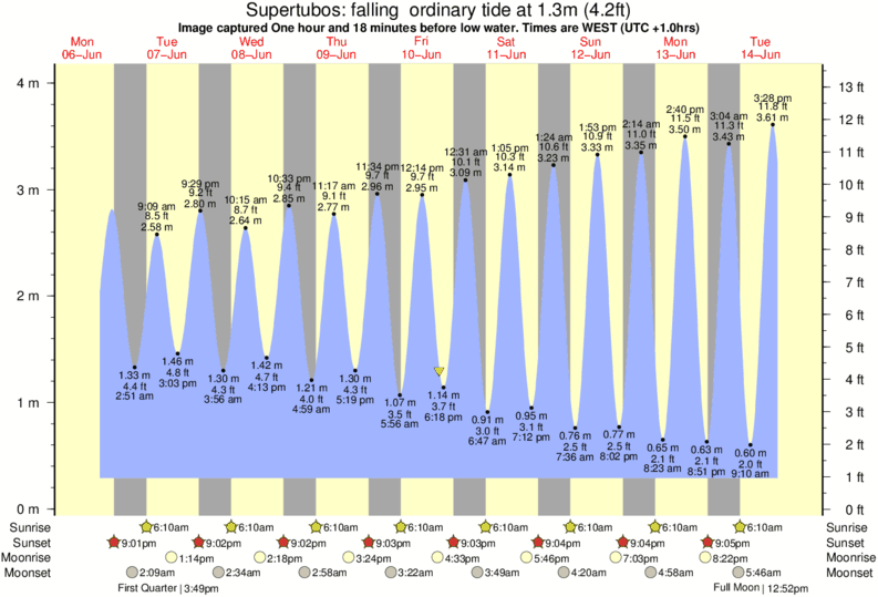 Image captured One hour and 18 minutes before low water (falling ordinary tide). Tide height was 1.3m (4.2 ft). Range 3.54m (11.6 ft). Toggle tide graph