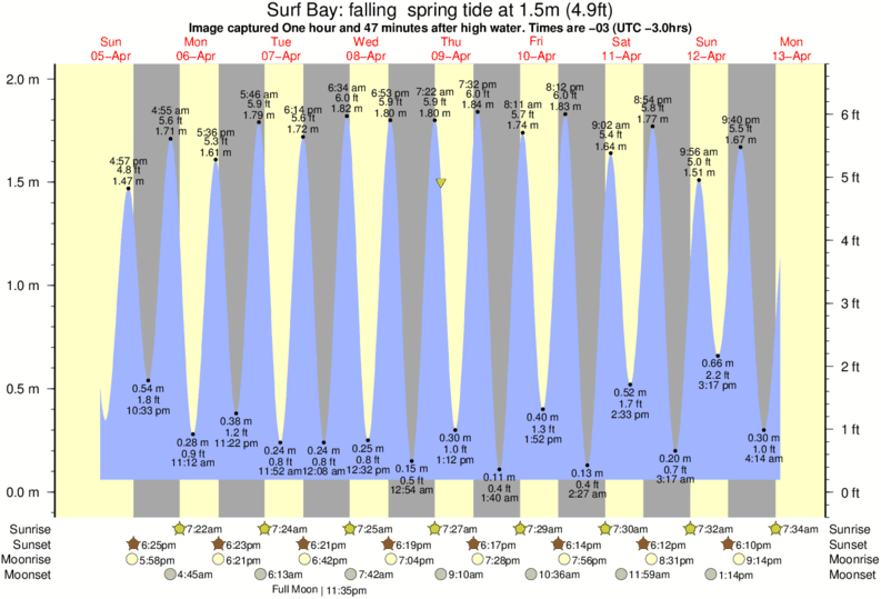 Forecast wind and swell just offshore from Surf Bay around the time the photo was taken