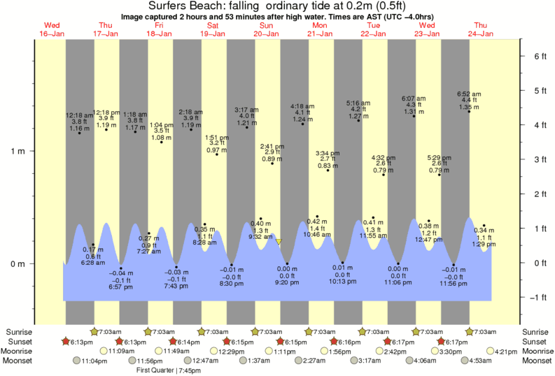 Image captured 2 hours and 53 minutes after high water (falling ordinary tide). Tide height was 0.2m (0.5 ft). Range 2.11m (6.9 ft). Toggle tide graph