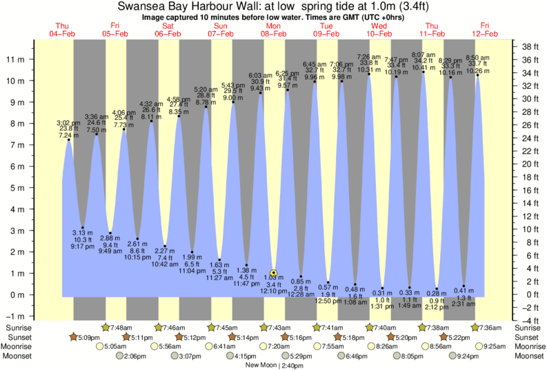 Forecast wind and swell just offshore from Swansea Bay Harbour Wall around the time the photo was taken