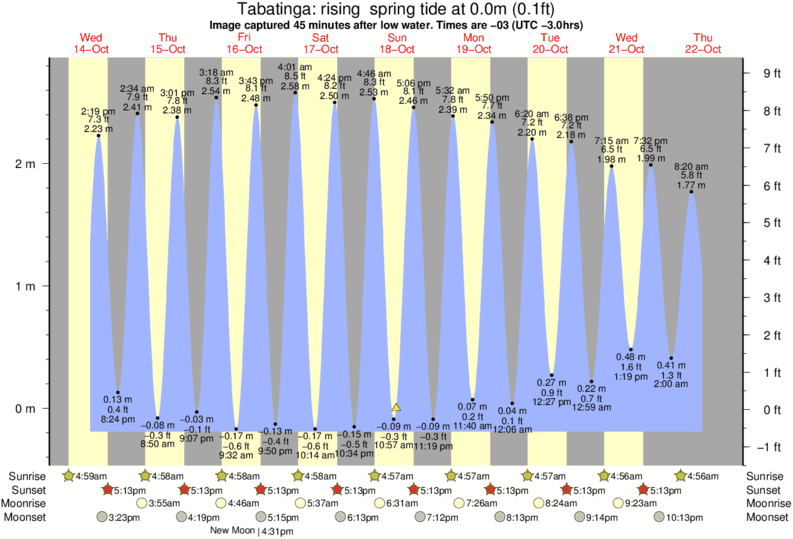 Image captured 45 minutes after low water (rising spring tide). Tide height was 0.0m (0.1 ft). Range 2.78m (9.1 ft). Toggle tide graph