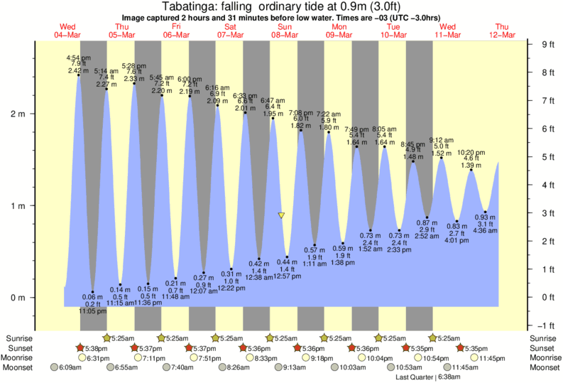 Image captured 2 hours and 31 minutes before low water (falling ordinary tide). Tide height was 0.9m (3.0 ft). Range 2.63m (8.6 ft). Toggle tide graph