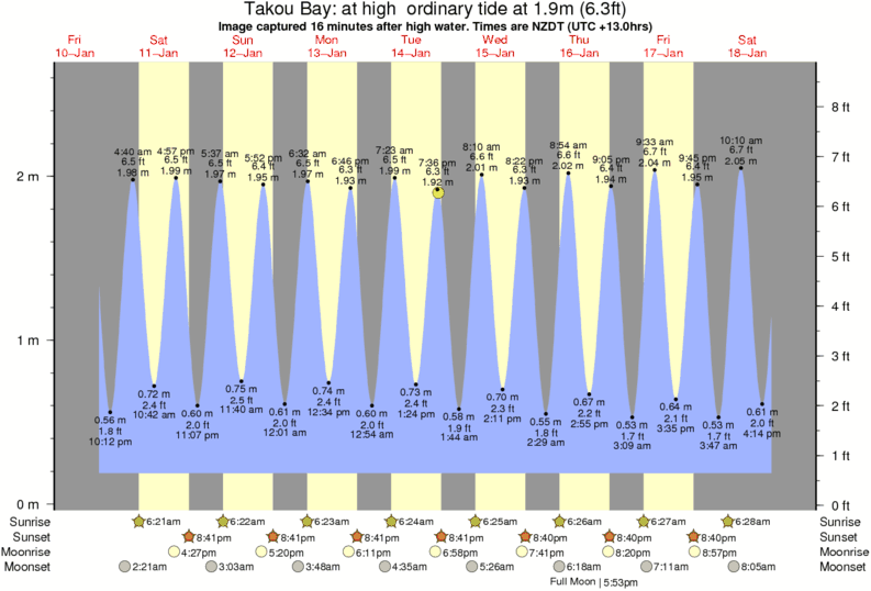 Image captured 16 minutes after high water (at high ordinary tide). Tide height was 1.9m (6.3 ft). Range 2.28m (7.5 ft). Toggle tide graph