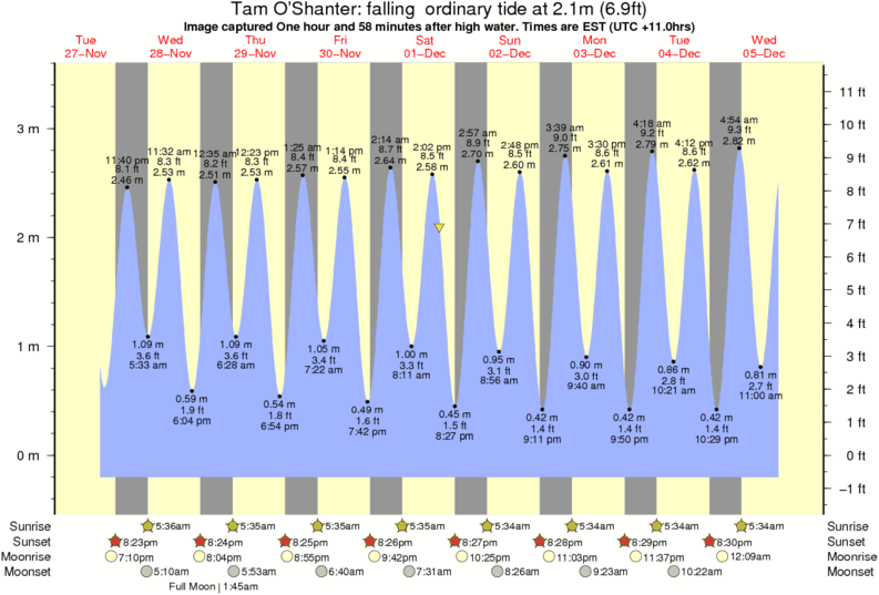 Image captured One hour and 58 minutes after high water (falling ordinary tide). Tide height was 2.1m (6.9 ft). Range 3.46m (11.4 ft). Toggle tide graph