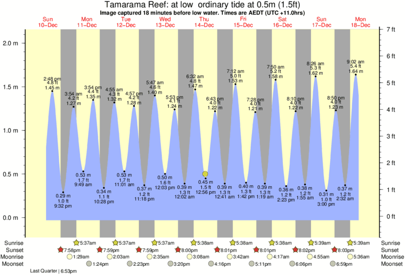 Forecast wind and swell just offshore from Tamarama Reef around the time the photo was taken